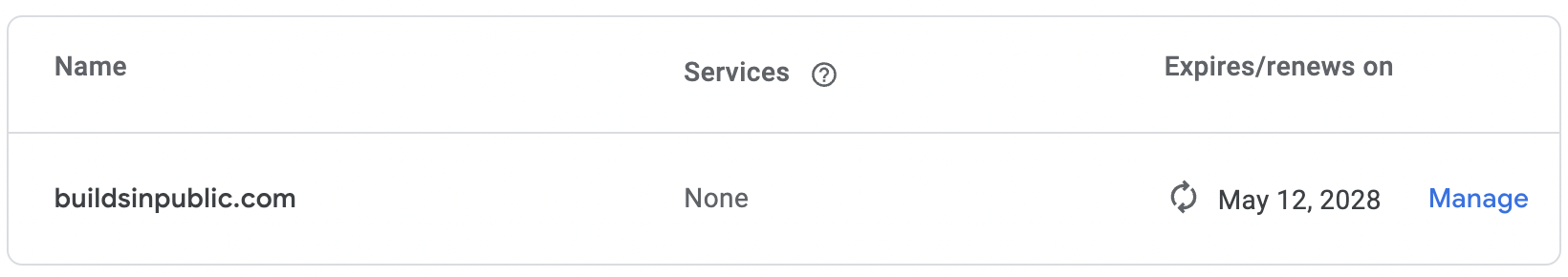 The domain is set up on Google Domains and doesn't expire until 2028 and I'm planning to continue renewing it forever.